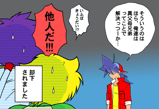 爆転マンガ版復活を知った喜びで勢いで描いたもの。 内容に関しては、なんか色々すみません…。 お●松Ver.のカイとレイの配役が最初は逆でした。